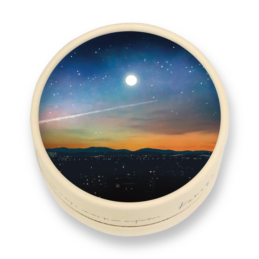 日常の街あかりと、非日常の夜空を一つに描きました。