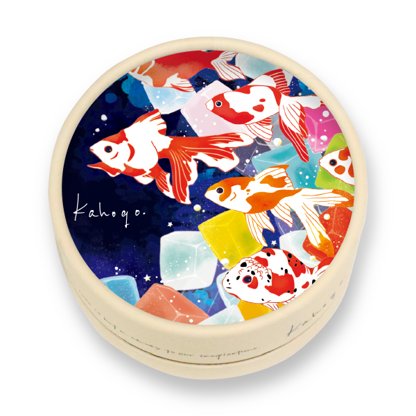 夏を彩る祇園祭の夜。金魚すくい、カラフルな京菓子、明るく賑やかな屋台の灯り。子どもの頃に胸を躍らせた、祭りの夜ならではの心が弾むキラキラした景色を幻想的に描きました。